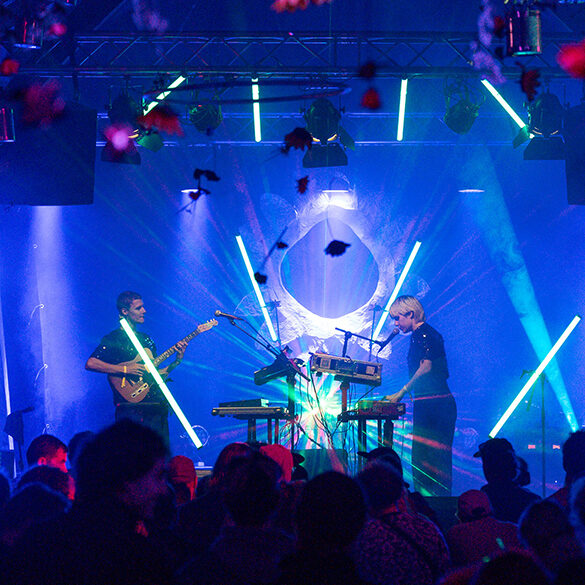 cablesalad spielt ein Live-Set mit treibenden Beats, sphärischen Klängen, akustischen Instrumenten und Vocals. Das Projekt entstand 2022 durch die Fusion der Soloprojekte von Anna Naïma und Leon Celestine. Der Sound bewegt sich zwischen dancy-electro-indiepop und melodic techno, geschmückt mit Poesie und Improvisation. Das Duo teilt nicht nur die an Wahnsinn grenzende Faszination für elektronische Devices, sondern auch zahlreiche Einflüsse aus anderen Kunstbereichen, wie dem Jazz, der Performance und dem Theater. Chips werden zu Snares, Regen trommelt, Ventilatoren werden zu fetten Baselines. Auf der Suche nach spannenden Sounds wird das Leben auf den Kopf gestellt. Lasst euch überraschen!